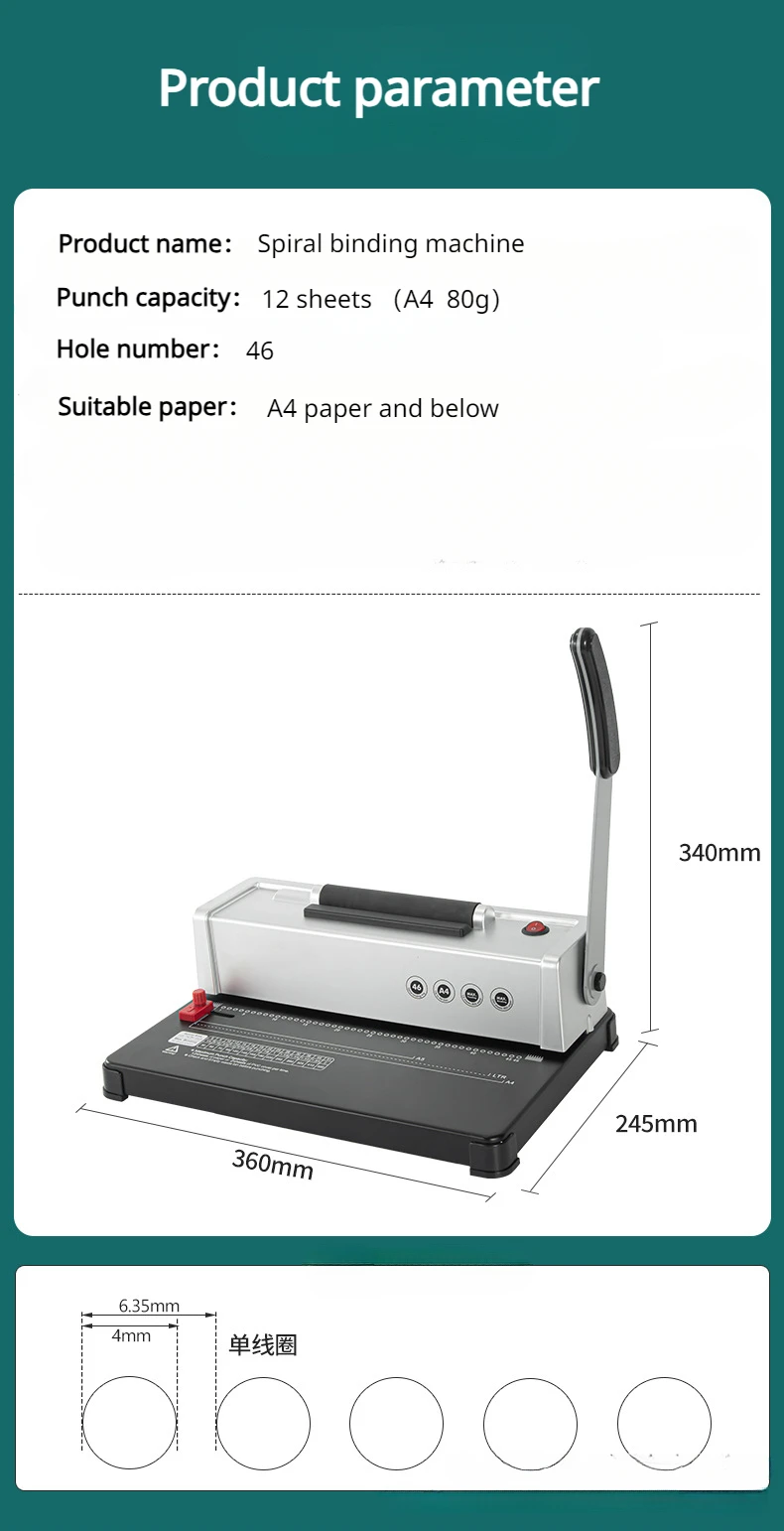 Electrical 4:1 Plastic Spiral Coil Book Binding Machine 4-hole Coil Binder Metal Spiral Wire Notebook Binding Machine