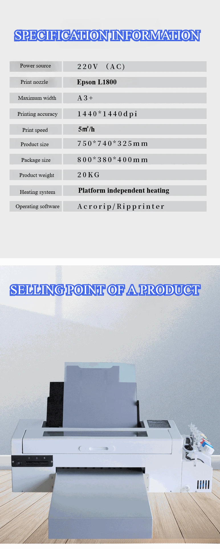 | Print color | C.M.Y.K+white ink | Ink volume | 100ml 200ml 250ml 500ml 1000ml |
