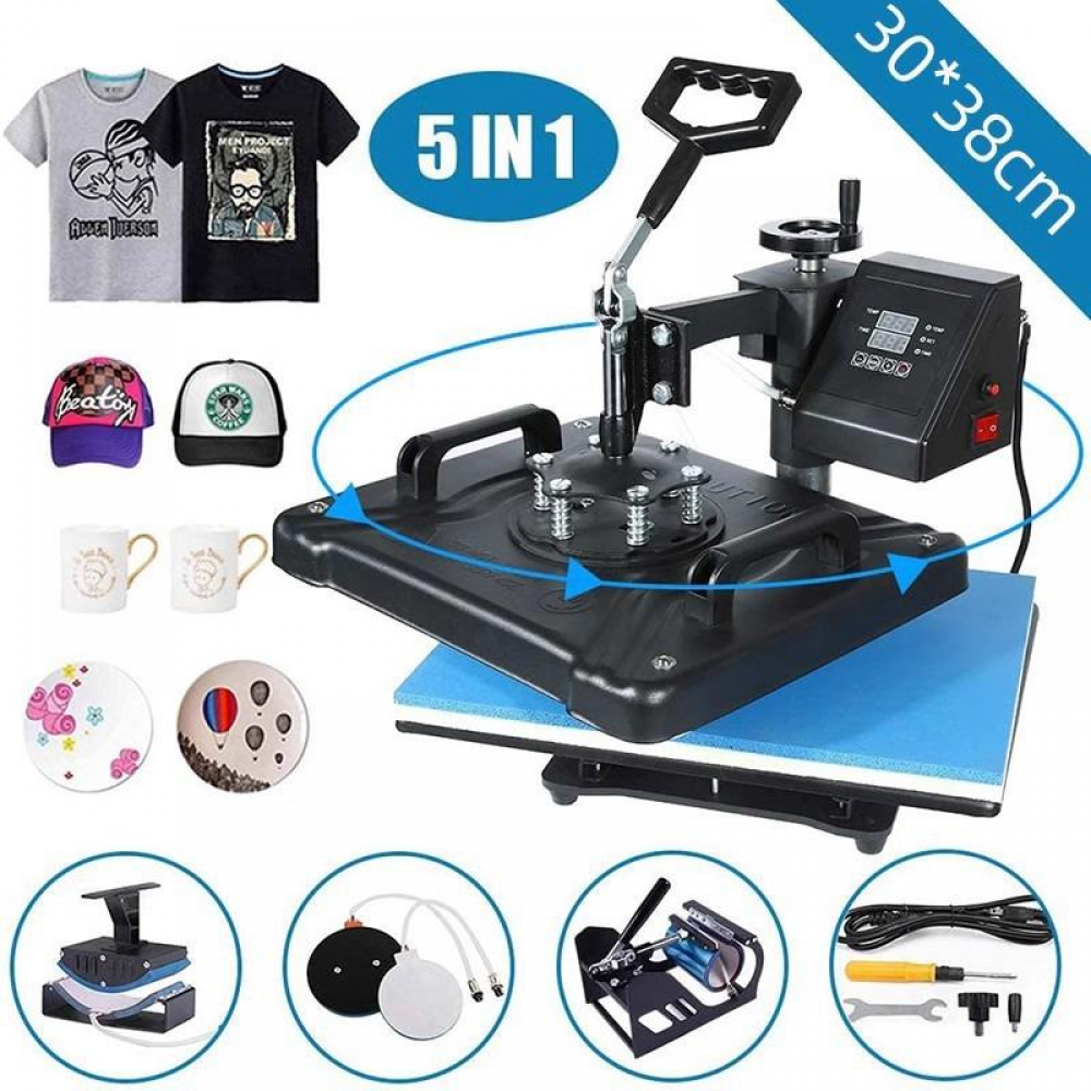 Multifunctional 5-in-1 Automatic Electric Heat Press Machine New Condition Flatbed Printer T-shirt Plate Home Use Printing Shops