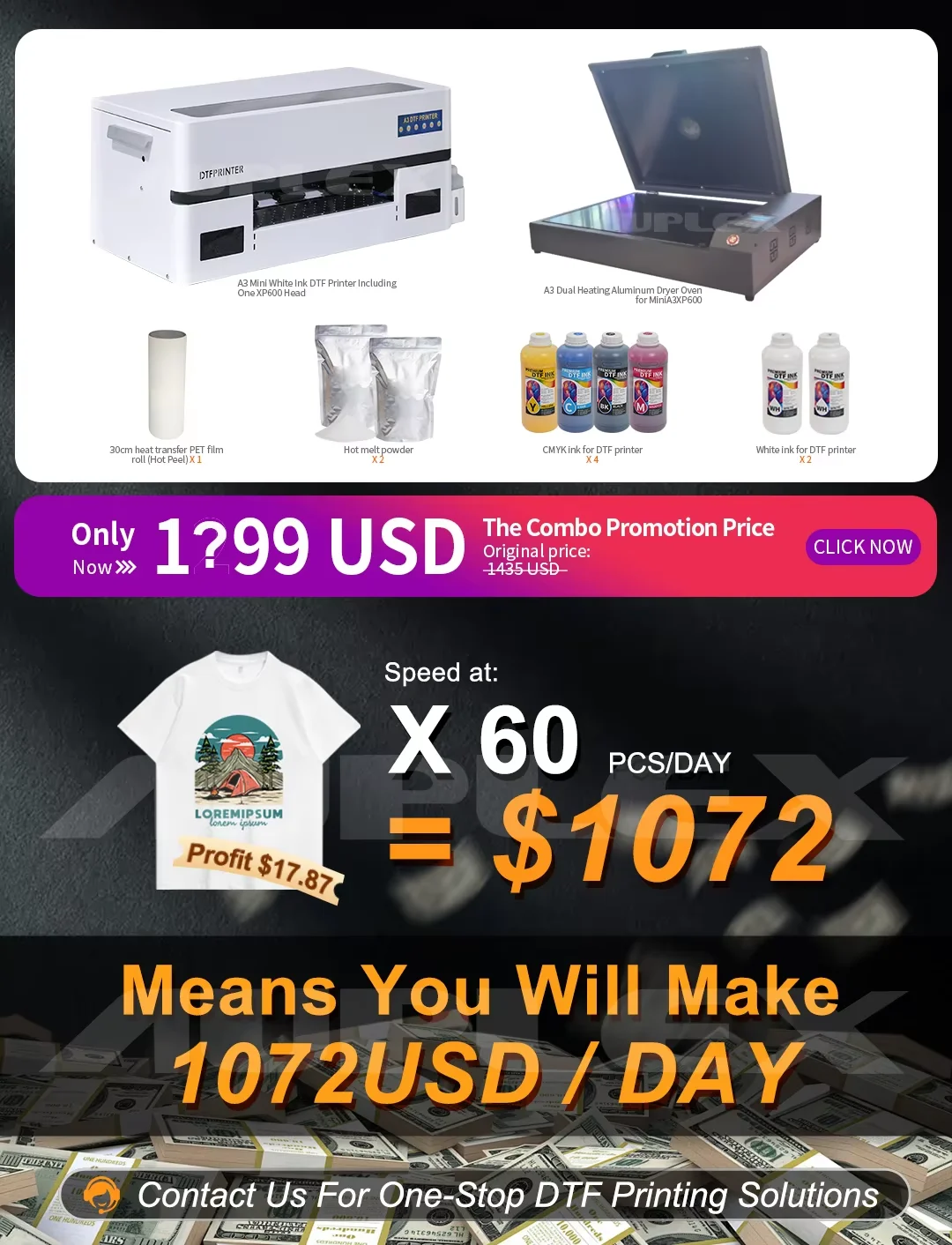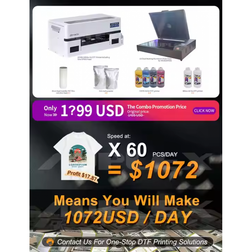 DTF is a revolutionary new printing technique that's more affordable and accessible compared to DTG, screen printing, or laser,