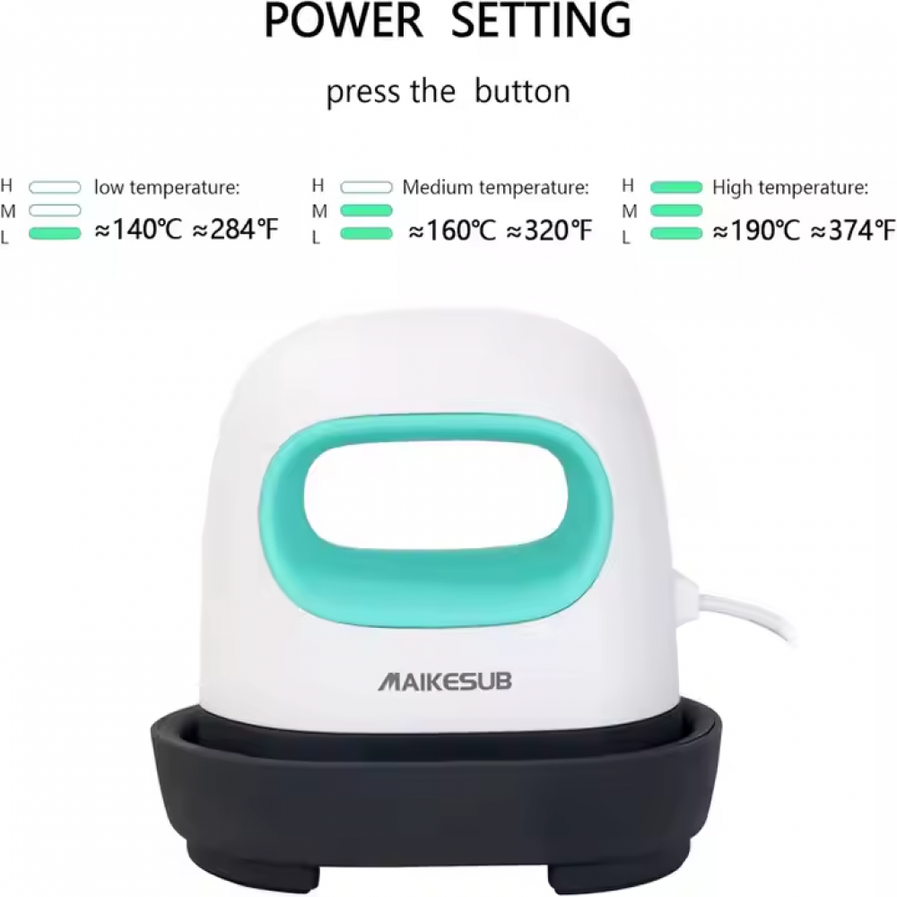 MOMOTECH portable heat press come with 3 heating settings: lowtemperature: 284℉ (140℃) suitable for vinyl stickers; medium