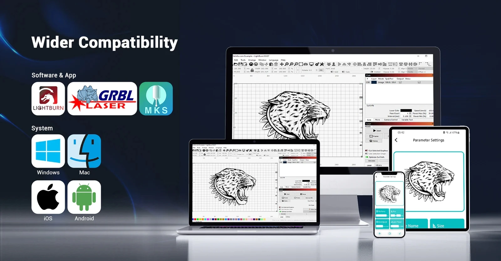 | Laser Type | Diode | Graphic Format Supported | SVG, NC, BMP, JPG, PNG, Gcode, etc. |