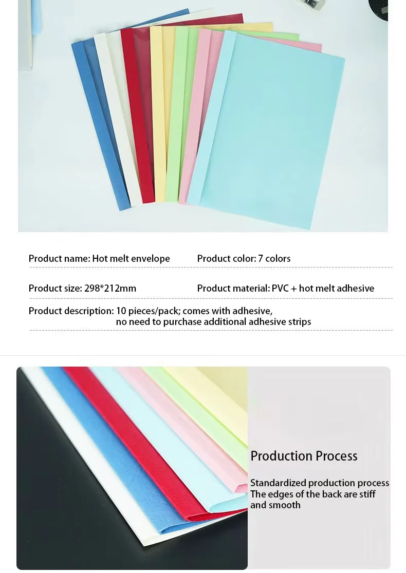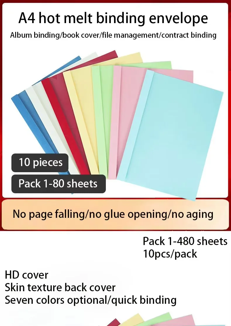 | Color | White/Light Blue/Light Green/ Pink/Light Yellow/Dark Blue/Red | Product Name | Thermal Binding Covers |